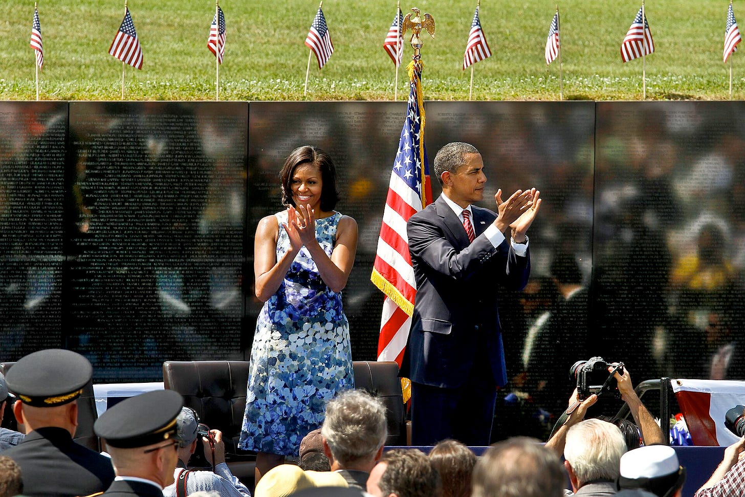 We have shifted realms, from partisan politics to spiritual space. That hideous image of the Obamas — the “when they go low, we go high” Obamas — crossed the line from degradation to desecration. If America does in fact have a civic creed, then it upholds values of equality, liberty, justice, democracy, tolerance, decency, dignity, respect, and hospitality. We place our faith in those values, even as we continually fall short and grapple with our civic sins. To insult and actually laugh at those values is to trample the closest thing we have to civic holy ground.